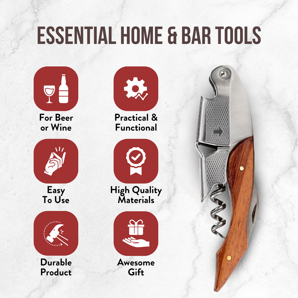 - Aside from the premium quality of this opener, it has a 3 in 1 multi-function capability. This corkscrew does not only have a wine corkscrew, but it also has a bottle opener and the previously mentioned foil cutter. Each opener has a 420 stainless steel core sheathed between two solid rosewood hand-grips.